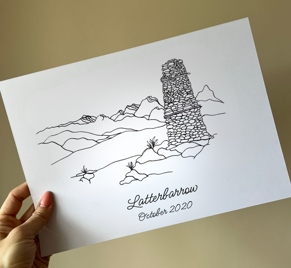 Cow and Calf, Ilkley Print, Hand-Drawn Black Ink Yorkshire Landscape, Personalised Gift