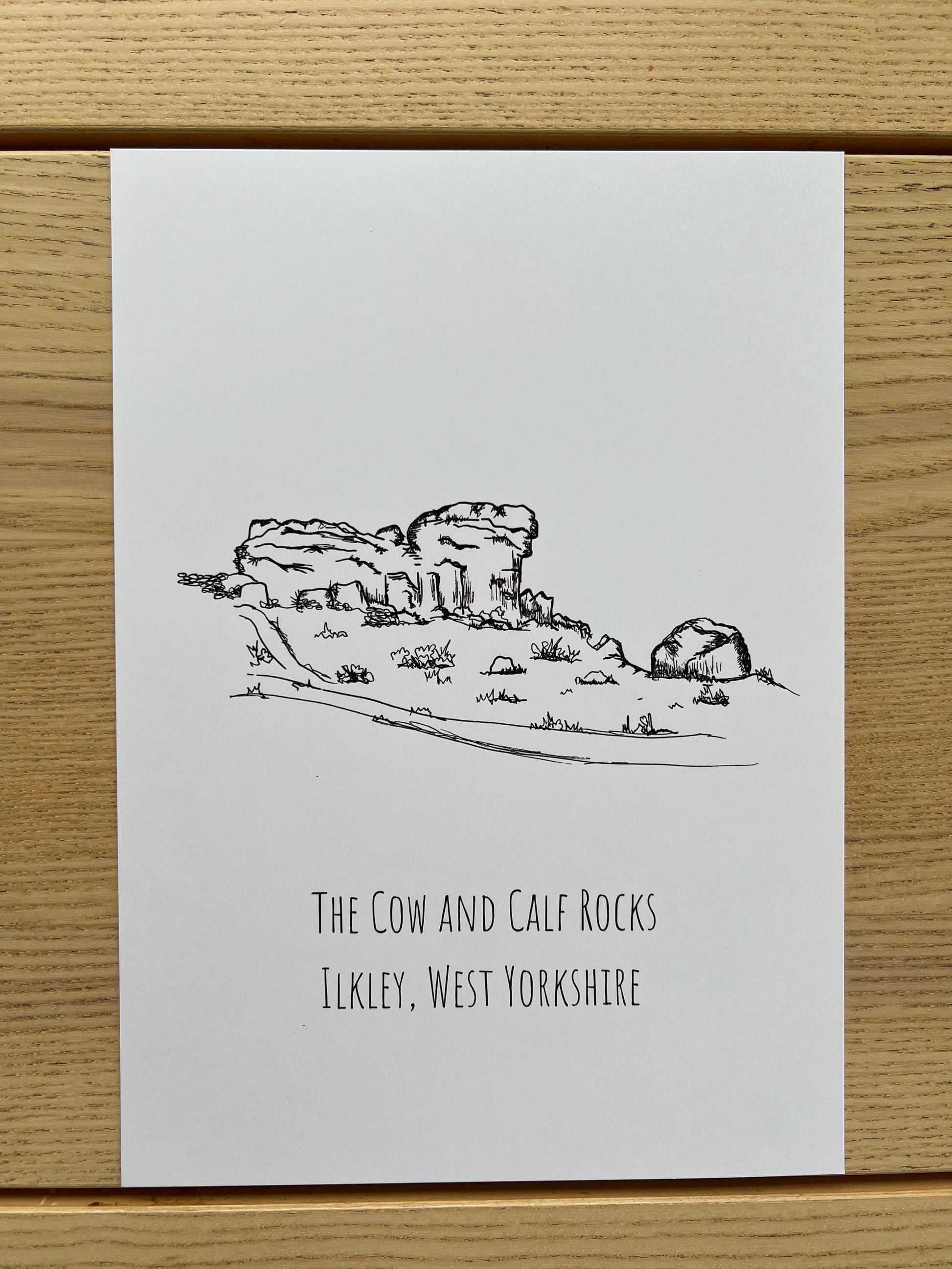This fine line illustration is a timeless tribute to the iconic Cow and Calf Rocks, one of Yorkshire’s most recognisable and much-loved natural landmarks.
